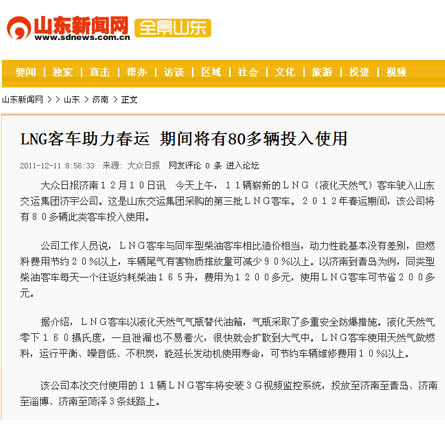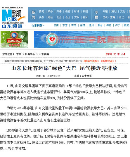 12月6日—9日,集團(tuán)公司組織了以“山東交運集團(tuán)80余部燃?xì)馇鍧嵞茉喘h(huán)??蛙囍Υ哼\”為主題的聯(lián)合新聞采訪活動。山東電視臺、濟(jì)南電視臺、《大眾日報》、《齊魯晚報》、《現(xiàn)代交通報》、《濟(jì)南日報》、《濟(jì)南時報》、《交通廣播》等8家新聞媒體紛紛派出記者組成聯(lián)合新聞采訪團(tuán),對集團(tuán)公司本次購進(jìn)燃?xì)馇鍧嵞茉喘h(huán)??蛙嚬ぷ?,從環(huán)保、節(jié)能、安全等方面,以關(guān)注民生、行業(yè)發(fā)展、春運動態(tài)等角度進(jìn)行了深入采訪。