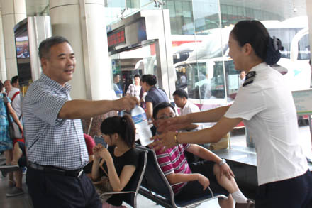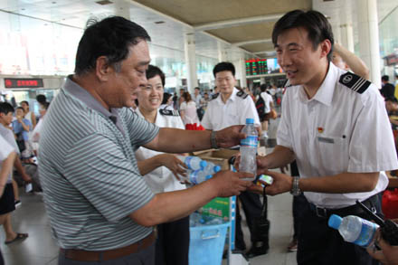 7月3日和5日,集團(tuán)公司組織開展了“夏日送清涼”系列活動(dòng)。集團(tuán)公司領(lǐng)導(dǎo)帶領(lǐng)總部黨員干部職工先后到濟(jì)南長途汽車總站、總站南區(qū)和刁鎮(zhèn)汽車站,慰問在酷暑下奮戰(zhàn)一線的廣大干部職工和過往旅客,為他們送上綠豆湯、冷飲和礦泉水,讓他們感受到組織的關(guān)愛和夏日的清涼。