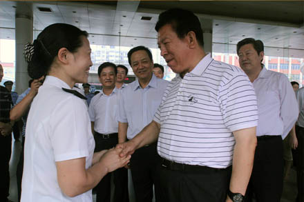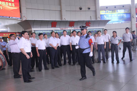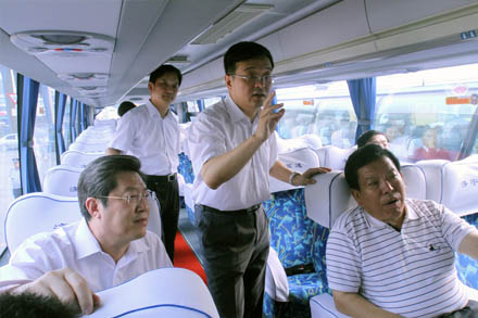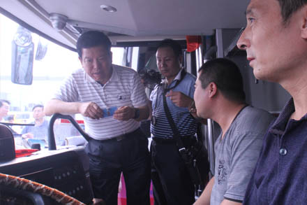 王副局長先后視察了濟(jì)南長途汽車總站的安檢、總服務(wù)臺(tái)、檢票、售票、熱線等崗位,與黨的十八大代表、總站金牌檢票員李文親切交談,勉勵(lì)她在平凡的服務(wù)一線崗位上將親情服務(wù)持續(xù)發(fā)揚(yáng)下去。王副局長一行領(lǐng)導(dǎo)專門登上代臥車、臥鋪車,向安全行車370萬公里“零事故”駕駛員、省勞模賈湘鳴及宜昌臥鋪班車駕乘人員詳細(xì)詢問了車輛改造、安全運(yùn)營以及車載GPS的使用情況;在安全監(jiān)控中心重點(diǎn)了解了車輛3G視頻及GPS監(jiān)控管理情況。