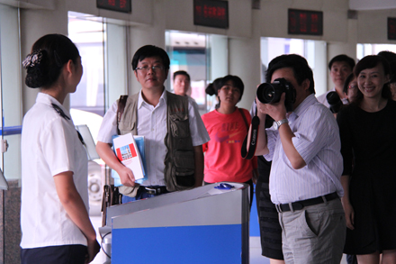 媒體記者逐一參觀了濟南長途汽車總站,零距離體驗了駕駛員人臉識別、酒精檢測、車載GPS、3G視頻等車站源頭安全管理和班車實時動態(tài)監(jiān)控情況;深入檢票一線和班車發(fā)車區(qū),與黨的十八大代表、山東省勞模李文親切交流;登上LNG清潔能源高級商務車,向安全行車370萬公里“零事故”駕駛員、省勞模賈湘鳴,詳細了解安全運營節(jié)能情況;在96369服務熱線、總服務臺、“英語崗”、“女士購票窗口”等特色服務崗位,體驗了電話預約售票及特色服務流程。在接下來的座談中,王謙總經(jīng)理詳細介紹了集團各產(chǎn)業(yè)板塊近年來不斷發(fā)展的基本概況、商業(yè)模式創(chuàng)新探索的效果以及今后工作的發(fā)展方向等,并對各新聞媒體關(guān)于集團戰(zhàn)略發(fā)展規(guī)劃、重點項目工程建設(shè)、不同產(chǎn)業(yè)創(chuàng)新舉措等提問進行了解答。各新聞媒體對集團公司堅持“安全十六字方針”和“人文關(guān)懷”理念,建設(shè)本質(zhì)性安全企業(yè)、在創(chuàng)新創(chuàng)效、節(jié)能減排等方面采取的有效措施以及“親情化管理,友情化服務”等方面傾注了較多關(guān)注,并提出了一些建設(shè)性的意見和建議。