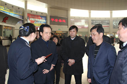 張主任一行深入現(xiàn)場(chǎng)察看了總站安檢、售票處、總服務(wù)臺(tái)、報(bào)班處、熱線中心和安全監(jiān)控管理中心等部門的工作情況,對(duì)總站特色服務(wù)和各項(xiàng)安全管理措施給予了充分的肯定。期間,張主任聽取了集團(tuán)公司2013年春運(yùn)具體方案以及總站春運(yùn)過(guò)程中安全管理、運(yùn)力保障、新聞宣傳等各個(gè)方面的詳細(xì)部署,了解了濟(jì)南西客站綜合客運(yùn)樞紐工程的建設(shè)進(jìn)度和甩掛運(yùn)輸試點(diǎn)項(xiàng)目的情況。他表示交運(yùn)集團(tuán)作為天橋區(qū)的重要企業(yè),具有廣泛的社會(huì)影響力,區(qū)政府將一如既往的支持集團(tuán)的未來(lái)發(fā)展,力爭(zhēng)實(shí)現(xiàn)雙方共贏的良好局面。
