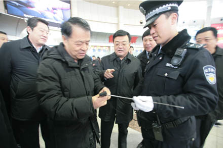 楊傳堂部長特別叮囑車站工作人員說:“安全檢查是車站服務的第一道關口,要充分利用人防、物防、技防等綜合手段加強關口職能到位,要牢固樹立安全第一的觀念,確保旅客乘車安全?!?