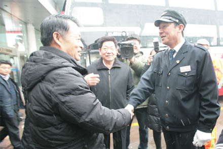 在視察中,楊傳堂部長還慰問了集團“安全行車三百六十萬公里無事故”駕駛員標兵賈湘鳴,詳細詢問安全行車經(jīng)驗和發(fā)車前安全告知宣傳情況;重點詢問了客運站營運客車安全例檢和臥鋪客車改造情況,對總站駕駛員安全報班處所采用的人臉識別系統(tǒng)、酒精檢測器、資質(zhì)審查信息庫等有效技術手段,給予了高度評價。