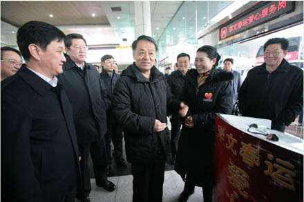 楊傳堂部長強調(diào),當前黨中央、國務院高度重視春運工作,溫家寶總理、張德江副總理、國務委員馬凱同志也先后專門作出重要批示。一年之計在于春,春運是歷年交通運輸工作量最大的時期,切實做好春運工作是當前的首要任務。這次春運檢查就是了解各地貫徹落實情況,通過檢查發(fā)現(xiàn)山東今年春運的各項準備工作動手早、扎實有力,也很有特點。為確保春運工作安全、有序、高效,要切實抓好“五項工作”,即:一要切實抓好安全生產(chǎn)。二要切實抓好服務質(zhì)量。三要切實抓好運輸組織。四要切實抓好應急保障。五要切實抓好市場監(jiān)督。最后,楊傳堂部長代表交通運輸部,向所有戰(zhàn)斗在一線的同志們所付出的努力,表示衷心的感謝!希望大家繼續(xù)發(fā)揚吃苦耐勞、甘于奉獻的精神,切實做好春運保障工作,不辜負黨和人民的期望。