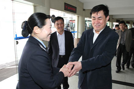 視察過程中,張傳亭與黨的十八大代表、檢票員李文親切交談,鼓勵(lì)李文及廣大優(yōu)秀員工繼續(xù)發(fā)揚(yáng)心系旅客、真情服務(wù)的精神,進(jìn)一步塑造“山東交運(yùn)”更加亮麗的服務(wù)品牌。在安全報(bào)班處,張廳長(zhǎng)對(duì)集團(tuán)采用人臉識(shí)別系統(tǒng)、酒精檢測(cè)器、資質(zhì)審查信息庫(kù)等有效技術(shù)手段給予了高度評(píng)價(jià)。在“最美司機(jī)”宋洋先進(jìn)事跡展板前,他勉勵(lì)廣大駕駛員要以宋洋為榜樣, 恪盡職守,扎實(shí)工作,不斷提高行車安全水平和服務(wù)質(zhì)量, 在任何危急情況下,都要確保旅客生命安全。在集團(tuán)安全運(yùn)營(yíng)監(jiān)控中心,張傳亭指示廳有關(guān)負(fù)責(zé)人員要積極探索高速公路監(jiān)控系統(tǒng)與集團(tuán)公司監(jiān)控系統(tǒng)的對(duì)接工作,爭(zhēng)取早日實(shí)現(xiàn)資源與信息共享,使省廳監(jiān)控系統(tǒng)更加掌握一線動(dòng)態(tài),讓運(yùn)輸企業(yè)能夠更加及時(shí)和直觀地掌握全省的實(shí)時(shí)路況,確保客運(yùn)班車運(yùn)行更加安全、更加科學(xué)、更加暢通。