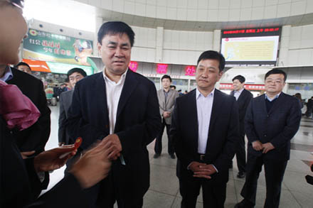 張傳亭廳長(zhǎng)慰問了十八大代表、檢票員李文(交通廳張偉/攝)