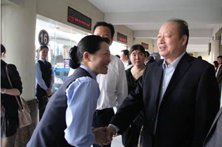 楊會(huì)長一行先后來到總站售票窗口、總服務(wù)臺、候車廳、安全報(bào)班處及集團(tuán)安全運(yùn)營監(jiān)控中心,詳細(xì)了解總站創(chuàng)新服務(wù)措施,詢問各崗位工作情況,并親切慰問了車站一線員工。隨后,楊會(huì)長一行來到集團(tuán)多功能廳與省交通運(yùn)輸廳及集團(tuán)公司領(lǐng)導(dǎo)座談交流。王謙總經(jīng)理對集團(tuán)近年來發(fā)展情況進(jìn)行了簡要匯報(bào)。高洪濤巡視員對集團(tuán)公司從保持安全運(yùn)輸業(yè)績、培養(yǎng)大批人才及企業(yè)文化建設(shè)等方面進(jìn)行了充分肯定。