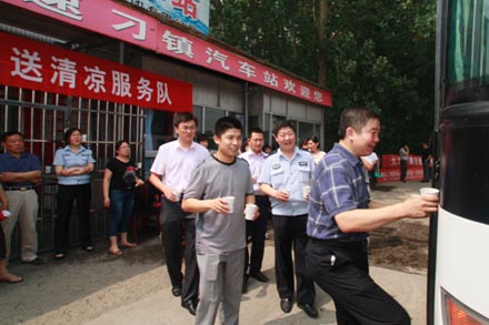 7月8日,集團(tuán)公司工會與總部黨支部組織54名總部黨員干部組成暑期送清涼服務(wù)隊,冒著30多度的高溫,到濟(jì)青高速公路刁鎮(zhèn)高速公路客運站,為過往乘客和駕駛員送去清涼的雪糕和消暑的綠豆湯。一上午的時間共為過往近百部客運車輛、2000余名旅客送去了夏日的清涼。集團(tuán)公司董事、工會主席張志堅、黨委副書記楊國強(qiáng)、紀(jì)委書記劉鳳義、副總經(jīng)理李利、總經(jīng)濟(jì)師馮唯一、財務(wù)總監(jiān)吳乃東等領(lǐng)導(dǎo)帶隊參加了此次“送清涼”活動。