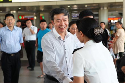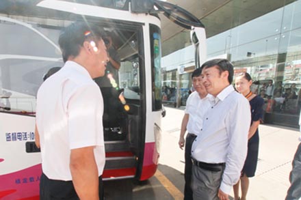 何部長在山東交運(yùn)濟(jì)南長途汽車總站先后視察了售票處、總服務(wù)臺、候車廳、安全報(bào)班處及集團(tuán)安全運(yùn)營監(jiān)控中心,詳細(xì)了解集團(tuán)企業(yè)文化建設(shè)、精神文明建設(shè)及安全生產(chǎn)相關(guān)措施,親切慰問了黨的十八大代表、省交通系統(tǒng)勞動模范李文,山東省勞動模范、安全行車367萬公里無事故安全標(biāo)兵賈湘鳴等一線員工。
