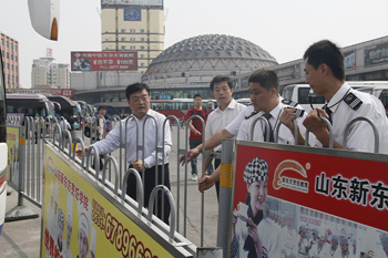節(jié)日期間,濟(jì)南市交通局將臨時加班車手續(xù)審核點(diǎn)設(shè)立在發(fā)車一線,在確保加班車審驗(yàn)資質(zhì)合格的情況下,簡化手續(xù),加快流程;交警部門則采取了“東西方向大型客車借道BRT通行;車站西邊工商河?xùn)|側(cè)馬路實(shí)施交通管制”等5大舉措,對總站周邊車流進(jìn)行交通管制,使站內(nèi)車輛及時分流,確保了站內(nèi)、站外交通循環(huán)通暢,為今年十一黃金周旅客安全順暢出行提供了有力保障。濟(jì)南長途汽車總站微信平臺也發(fā)揮了積極的疏導(dǎo)作用,市民按照隨時掌握的車次信息及票務(wù)情況,合理安排行程,有效避免了部分線路客流過于集中,使各線路運(yùn)行更加快捷通暢。