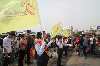 節(jié)日期間,集團(tuán)公司雙節(jié)運(yùn)輸領(lǐng)導(dǎo)小組多措并舉,迅速調(diào)集加班車輛支援熱點(diǎn)線路,在原有運(yùn)力基礎(chǔ)上,投入加班運(yùn)力900部,40500個客位,開放售票窗口110個,增開臨時售票窗口50個,在市區(qū)設(shè)置了80多個聯(lián)網(wǎng)售票點(diǎn),增設(shè)3個臨時發(fā)車區(qū),50名武警部隊(duì)?wèi)?zhàn)士、60名泉城義工主動加入旅客運(yùn)輸服務(wù)工作,協(xié)助站內(nèi)導(dǎo)乘、維持秩序,使旅客能在較短的時間內(nèi)購票、檢票、乘車。