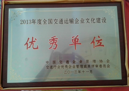 11月25日,在中國交通企業(yè)管理協(xié)會、交通行業(yè)優(yōu)秀企業(yè)管理成果評審委員會在廣州組織召開的“第八屆全國交通運輸企業(yè)文化建設高峰會”上,集團公司榮膺“2013年度全國交通運輸企業(yè)文化建設優(yōu)秀單位”榮譽稱號。