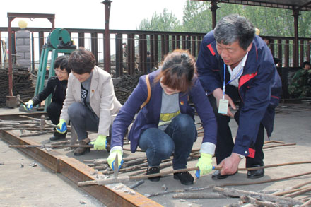 女隊(duì)員們?cè)谇竦V黨委副書記彭士偉、黨群部副部長(zhǎng)季書強(qiáng)的引導(dǎo)下,先后參觀了原煤倉、洗煤線、機(jī)修車間、維修廠、園區(qū)等地。其中,草根發(fā)明、成本計(jì)量單等節(jié)能降耗舉措給大家留下了深刻的印象。在維修廠區(qū),女隊(duì)員們參與了水泥鋼筋的回收再造工作,手持6斤鐵錘,體驗(yàn)了維修工人每人每天徒手清理200根鋼筋的工作量。真實(shí)感受了員工為企業(yè)節(jié)約每一分成本的真情實(shí)感。