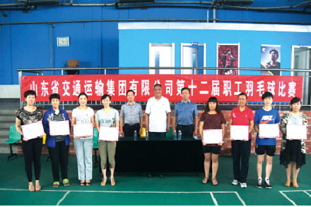 集團(tuán)公司第十二屆職工羽毛球比賽于6月19日至20日在金芙蓉健身俱樂(lè)部翡翠郡店羽毛球館舉行,本次比賽共有19個(gè)代表隊(duì)報(bào)名參賽,男運(yùn)動(dòng)員55人,女運(yùn)動(dòng)員37人。第一客運(yùn)公司、第四客運(yùn)公司分獲男子團(tuán)體第一名和女子團(tuán)體第一名。集團(tuán)公司工會(huì)主席張志堅(jiān)、總法律顧問(wèn)耿俊宏、工會(huì)副主席王繼茂分別為獲得名次的單位和運(yùn)動(dòng)員頒獎(jiǎng)。