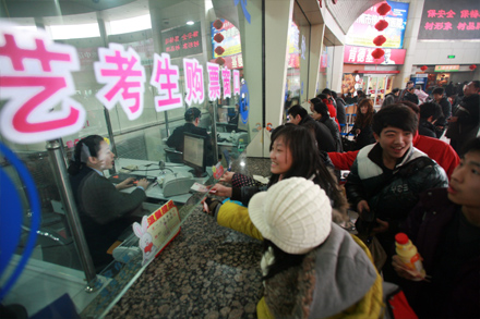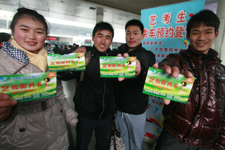 在售票處,總站專門 為增設(shè)了“藝考生購票窗口”,就青島、濰坊、淄博、曲阜等藝考線路,向藝考生提供優(yōu)惠和優(yōu)先的購票服務(wù)。為方便眾多藝考生在多個考點城市中轉(zhuǎn)乘車,總站還在藝考生中轉(zhuǎn)趕考集中的43號檢票口,特別設(shè)立了“藝考生服務(wù)臺”,并推出預(yù)約乘車、送藝考生趕考的便捷服務(wù),藝考生只需憑借準考證,即可享受優(yōu)先預(yù)訂中轉(zhuǎn)客票、優(yōu)先乘車的“預(yù)約趕考服務(wù)”
