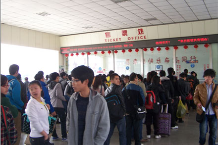 為方便旅客購(gòu)票,東站7個(gè)售票窗口全部開(kāi)放,另加設(shè)多個(gè)臨時(shí)售票點(diǎn);客流密集時(shí)段東站售票大廳購(gòu)票旅客排起了長(zhǎng)隊(duì),但秩序井然;車(chē)場(chǎng)上工作人員積極對(duì)熱點(diǎn)線路旅客隊(duì)伍進(jìn)行引導(dǎo),合理安排加班車(chē),旅客隨到隨走,滿足了假期旅客安全滿意的出行需求。