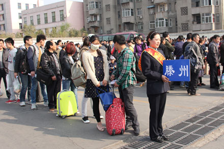 總站南區(qū)在清明小長假期間,繼續(xù)沿用一隊兩牌的順隊方式,在客流驟增前,啟用臨時發(fā)車場,確定線路排隊位置,從而確保旅客乘車秩序良好。同時,借鑒“導(dǎo)游旗”作用,制作了醒目的黃色引導(dǎo)旗,引導(dǎo)旅客進站購票和排隊乘車。繼續(xù)實行首問負(fù)責(zé)制,方便旅客能夠最快的掌握車站發(fā)車信息,處理好旅客相關(guān)反映問題的處理??傉靖骺剖疫€努力做好服務(wù)創(chuàng)新工作,針對清明踏青旅客,推出了“出行自由行,景點隨心配”的服務(wù),依托車站短途線路優(yōu)勢,開通了明水、平陰“賞泉游”,商河、東平“溫泉游”,僅明水今天就發(fā)送“賞泉游”旅客300余人。