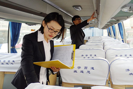 同時,為做好“五.一”期間的安全運(yùn)營工作,濟(jì)宇高速對全部營運(yùn)車輛進(jìn)行了一次臨檢,對輪胎、燈光、雨刷、GPS記錄儀、三角警示牌、滅火器、防滑鏈及車輛的剎車性能等方面,在原每日例檢的基礎(chǔ)上又進(jìn)行了統(tǒng)一檢測,確保設(shè)備完好有效。質(zhì)量督導(dǎo)科還對出場車輛進(jìn)行督察,通過層層把關(guān),確保了每部出隊車輛均能夠達(dá)到安全例檢合格、手續(xù)完備、車體七凈一亮、設(shè)施方便完好。每個出車駕駛員形象整潔干練、服務(wù)熱心、駕駛技能過硬。