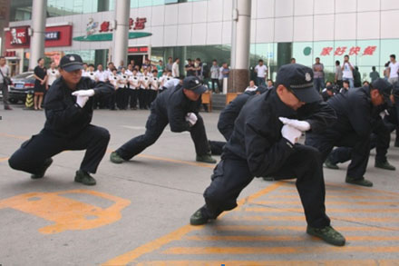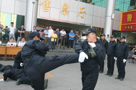 來自總站治安科的14名治安員通過“單科演練”、“對打演練”、“集體演練”三個科目,分別進行了“擒敵拳”防爆演練。期間,靈活有力的“盤腿飛踢”、“抱頭重摔”和能有效沖擊、控制恐怖分子的“貫耳沖擊”、“纏腕沖騰”等演練,博得了在場旅客的陣陣掌聲與喝彩。最終通過領導打分,共評選出一等獎1名,二等獎2名,三等獎3名,并現(xiàn)場進行了表彰。