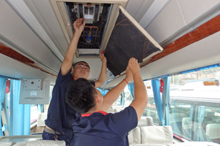 空調(diào)高效潔凈無異味 為確保車輛空調(diào)制冷性能,將空調(diào)檢查作為每日例檢必檢項,要求收車后將車內(nèi)空調(diào)統(tǒng)一設(shè)置到