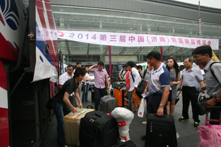 中韓博覽會提升服務擴影響 近日,為期三天的“2014中國韓國商品博覽會”在濟南舜耕國際會展中心開幕??傉痉e極與商務局洽談協(xié)商,最終確定負責博覽會期間參展商與代理商的車輛供應服務。展會期間,總站共派發(fā)班車30余部,成功接送外賓400余人,其中韓國外賓200余人,實現(xiàn)收入4萬余元。