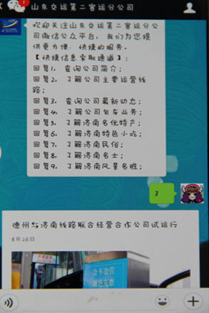近日,第二客運(yùn)分公司設(shè)計(jì)開通的“山東交運(yùn)第二客運(yùn)分公司”微信公眾號正式上線并進(jìn)入試運(yùn)行。乘客可以通過手機(jī)掃描公司二維碼或通過搜索公眾號“山東交運(yùn)第二客運(yùn)分公司”點(diǎn)擊“關(guān)注”,即可登陸公司微信服務(wù)平臺,及時(shí)收取公司相關(guān)活動資訊,查詢、了解公司客車班次變更、新班次開通、包車業(yè)務(wù)等相關(guān)信息,搶先知曉公司新服務(wù)、新營銷舉措,讓乘客足不出戶就可以享受方便、快捷、優(yōu)質(zhì)的服務(wù)。