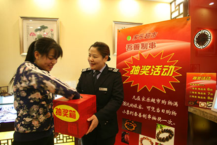 “吾善制串”開創(chuàng)新活動(dòng)。為不斷發(fā)揮場(chǎng)站的客流優(yōu)勢(shì),將旅客的乘車時(shí)間轉(zhuǎn)換為消費(fèi)優(yōu)勢(shì),總站“家樂超市”與“吾善制串”聯(lián)合推出抽獎(jiǎng)活動(dòng),凡在“家樂超市”購物滿38元的旅客都可憑當(dāng)日購物小票到“吾善制串”免費(fèi)抽獎(jiǎng)一次?;顒?dòng)的推出,不僅受到廣大旅客的熱情歡迎,更打響了總站“吾善制串”的知名度,增加了總站第三產(chǎn)業(yè)的營業(yè)收入。