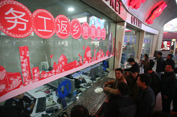 務(wù)工返鄉(xiāng),優(yōu)惠專享。春運(yùn)臨近,務(wù)工返鄉(xiāng)客流逐漸增多,售票處適時(shí)推出“務(wù)工返鄉(xiāng)售票窗口”,為務(wù)工返鄉(xiāng)旅客提供全方位服務(wù),凡到總站乘車(chē)的團(tuán)體務(wù)工旅客(3人及以上),都可在此窗口購(gòu)買(mǎi)9折優(yōu)惠客票,并可享受優(yōu)先購(gòu)票、優(yōu)先挑選座號(hào)、隨身行李免費(fèi)、車(chē)票一個(gè)月內(nèi)免費(fèi)改簽、包車(chē)預(yù)約優(yōu)惠等系列服務(wù)?!皠?wù)工人員直通車(chē)”也同步啟動(dòng),旅客只需提前撥打熱線電話預(yù)定返鄉(xiāng)時(shí)間和目的地,“直通車(chē)”便會(huì)準(zhǔn)時(shí)開(kāi)進(jìn)工地,為廣大務(wù)工人員提供家到家、門(mén)到門(mén)的便利服務(wù)。